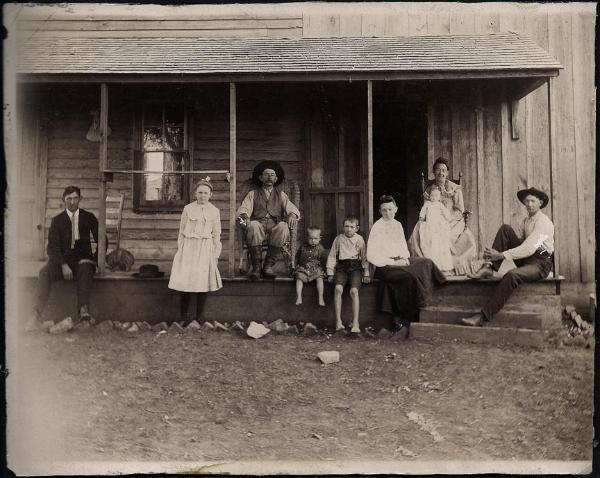 | Left to Right: Oliver, Maidee, James C McBee, Ernest, Paul, Maude, unknown baby, Elizabeth P McBee, and Gillie. Photo dated circa 1905 at family home in Howe, Texas Photograph provided by Jim McBee |