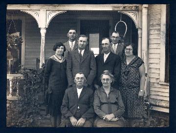 | Left to Right: Maude, Paul, Gillie, James C McBee, Elizabeth P McBee, Oliver, Ernest, and Maidee. Photo dated 1929 provided by Jim McBee |