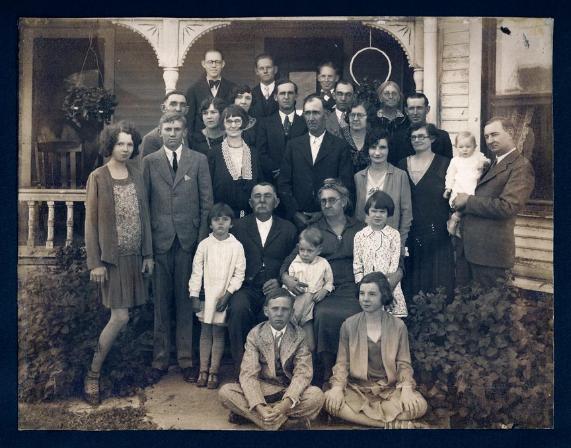 | Extended Family Photo dated 1929. Go through and pick out the one's you recognize. I see my mother, Ione, on the far left and grandparents, Edna and Gillie, holding baby JIm, at right. Of course, Grandpa and Grandma McBee in the center. I am guessing that is Ken McBee sitting on Grandma's knee. My two uncles, J O and Tom on the back row. Aunt Neva front right. Recognize any of the others? Photo dated 1929 provided by Jim McBee |
