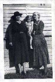| Betty Burks between Grandmother Edna McBee and Great grandmother Elizabeth McBee, photo circa 1939, provided by Jim McBee |